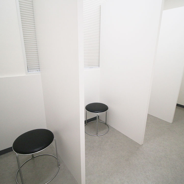 熱が出てつらい時に屋外で待つことのないように、気流のコントロールをおこなったうえで屋内で待機できる部屋をご用意しています。